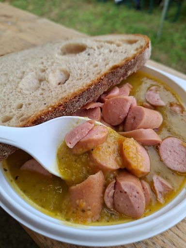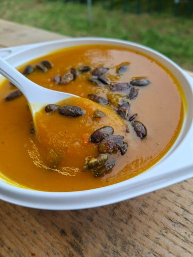 Die Mopedos hatten ihre Kutten gegen Kochschürzen getauscht. Statt Motoröl duftete es nach Kürbis, Kartoffel und einem Hauch von Zwiebeln. In schwungvoller Handarbeit wurden aus regionalen Produkten cremige Suppen gekocht, die in den Kesseln dampften und mit großen Kellen in die Schalen geschöpft wurden. Vollgas auf der Suppenstraße!