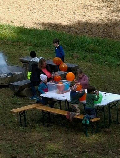 Auf der Wiese neben der Scheune tobten die Kinder und bemalten Luftballons mit lustigen Kürbisgesichtern oder saßen am Lagerfeuer mit langen Stöcken, auf denen sich kunstvoll gewickelter Brotteig drehte. Hier waren Profis am Werk!