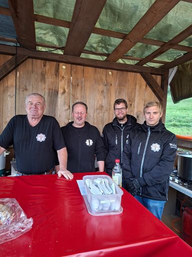 In der großen Pfanne wurden die Schupfnudeln von Matze Burger geschickt gewendet, während die Grill-Formation Steaks und Würste über den Rost jagten. Für die süße Abwechslung sorgten dann Waffeln und Kuchen.