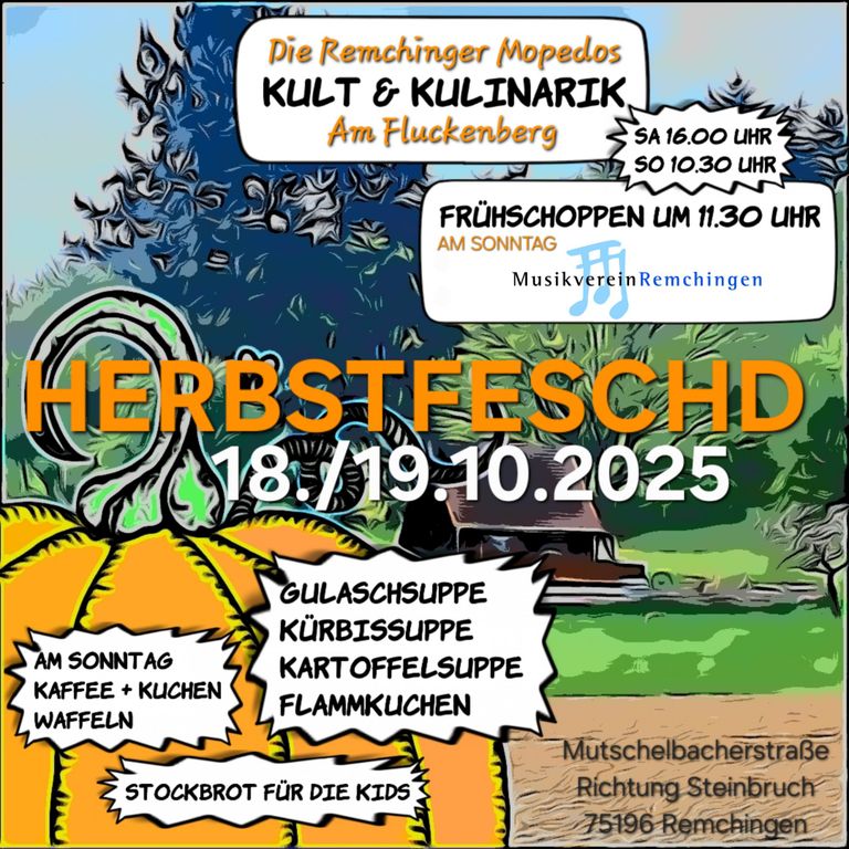 In herbstliches Ambiente gehüllt und mit einem großen Angebot an Sitz- und Stehplätzenmit bester Aussicht über Remchingen, durften die Remchinger Mopedos auch in diesem Jahr viele Gäste beim Herbstfeschd an der Mopedos Scheune begrüßen.