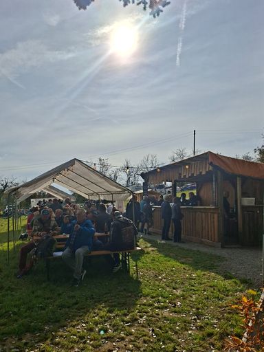 Am Sonntagmorgen wurde der Fluckenberg durch die Herbstsonne in ein warmes Gold getaucht und schon von weitem hörte man den fetzigen Takt der Kapelle. Die Besucher schlenderten gemütlich zur Scheune, viele mit dicken Jacken, Sonnenbrillen und einem Lächeln im Gesicht und die Plätze in den Zelten füllten sich.